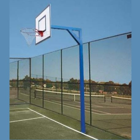 The 3.2" posts are inserted into a concrete floor anchor (concrete not included) and can be removed if necessary. 48" x 35" or 40" x 70" wood panels. Spray-painted steel hoops. Net included 150kg weight Weatherproof, rust free Thick marine plywood panel Red powder coated solid steel ring Steel ground sockets.