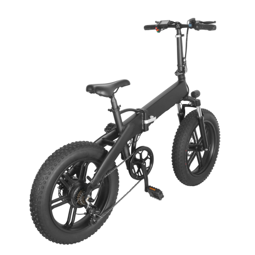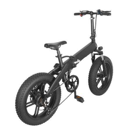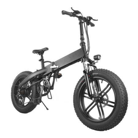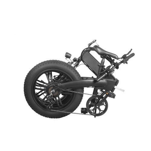 Foldable electric fat bike made of 6061 grade aluminum 20 inches tall. 500W electric motor powered by a 36v 10ah battery giving 30-40km electric range and 40-50km electric assist range. Front fork suspension and front and rear mechanical brakes. Warranty: 1 year, (Some exceptions apply).