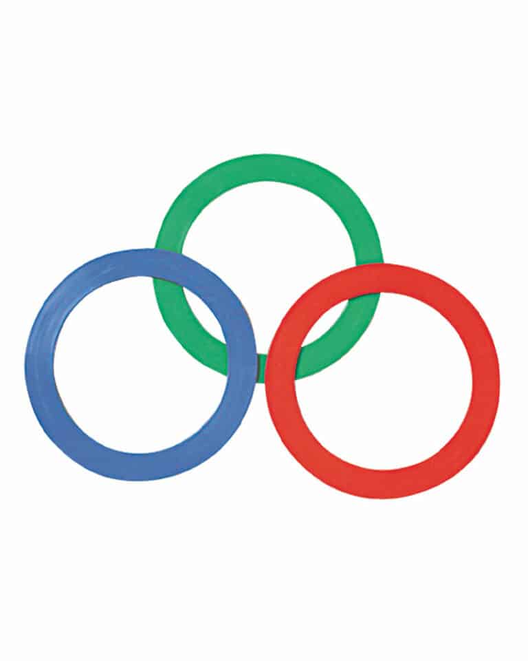 Sold individually, these flat plastic rings are 9 inches (24 cm) in diameter and available in red, blue, or green.