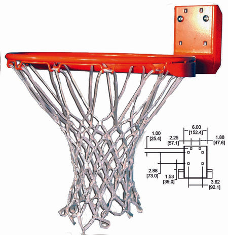 Our basketball hoops are made of galvanized steel and painted with sandblasting. Model for front or rear mounting depending on your basketball goal model. Rod thickness 5/8" inches.