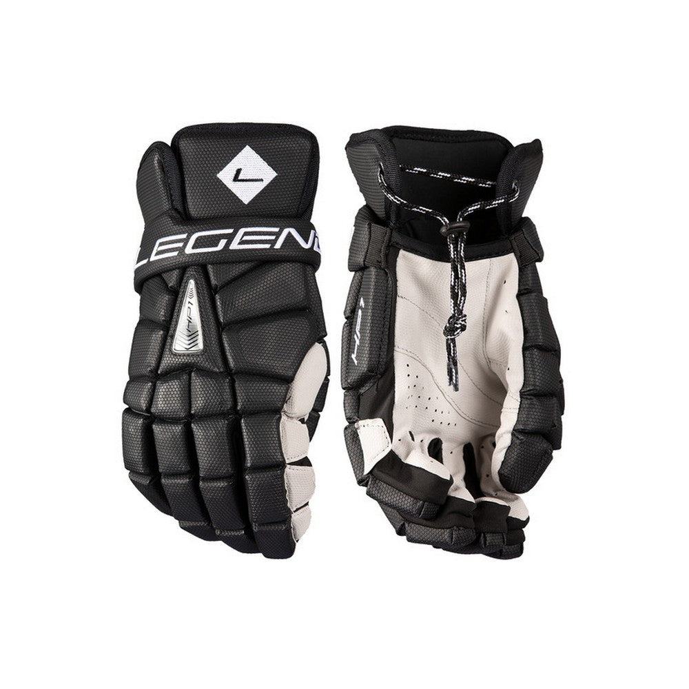The Legend HP1 gloves have a suede palm which makes stick handling very comfortable. It has a very resistant textured leather covering with a legendary design.