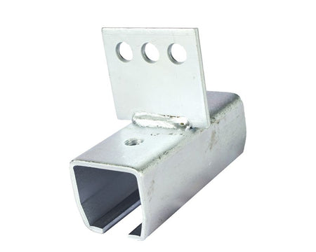 Vertical curtain track splice. Compatible with 16RT curtain track. Designed to be mounted on a beam or suspended using a chain with S-hook. The mounting plate has three pre-drilled 0.39 inch diameter holes.