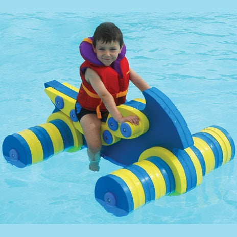 Made in Quebec from the best EVA foam on the market. This floating toy is very stable, easy for kids to climb on it. All you have to do is stomp your feet to walk around the pool. A nautical toy that will bring hours of fun.