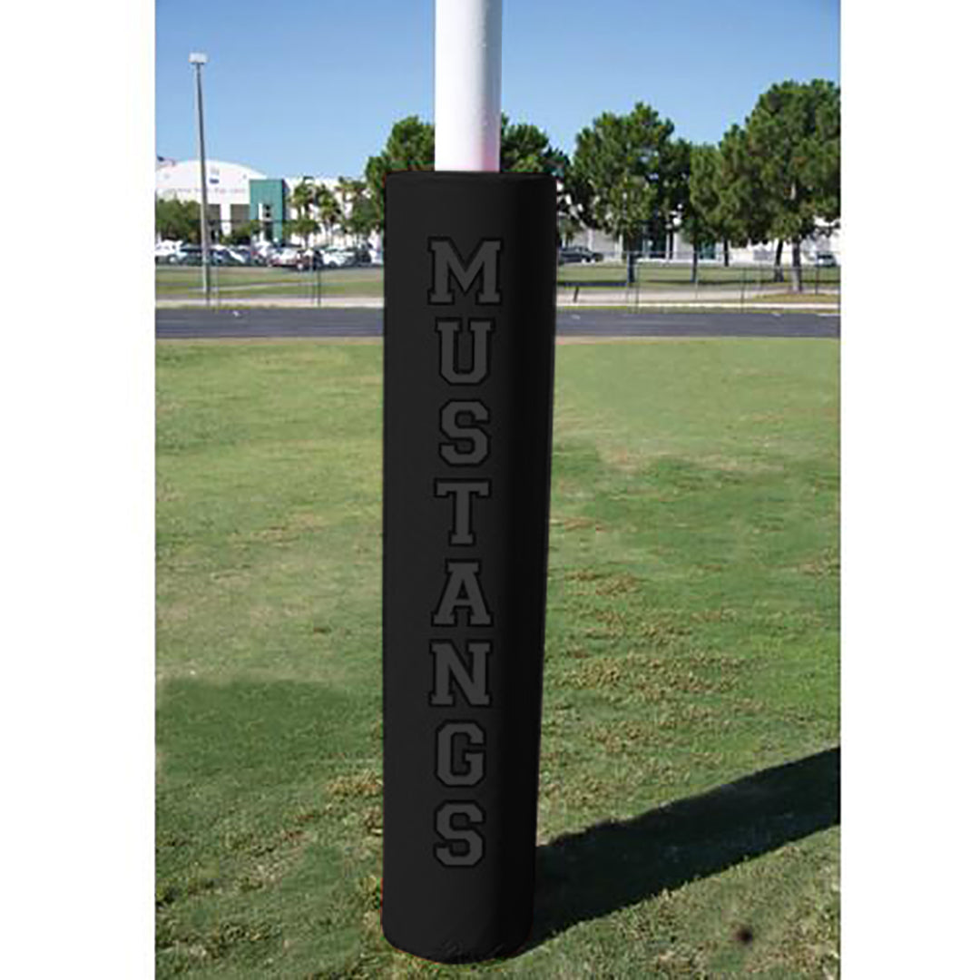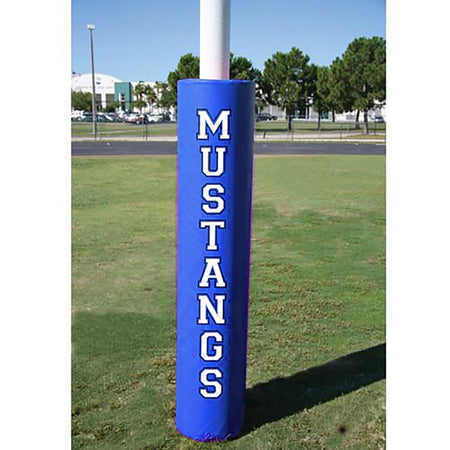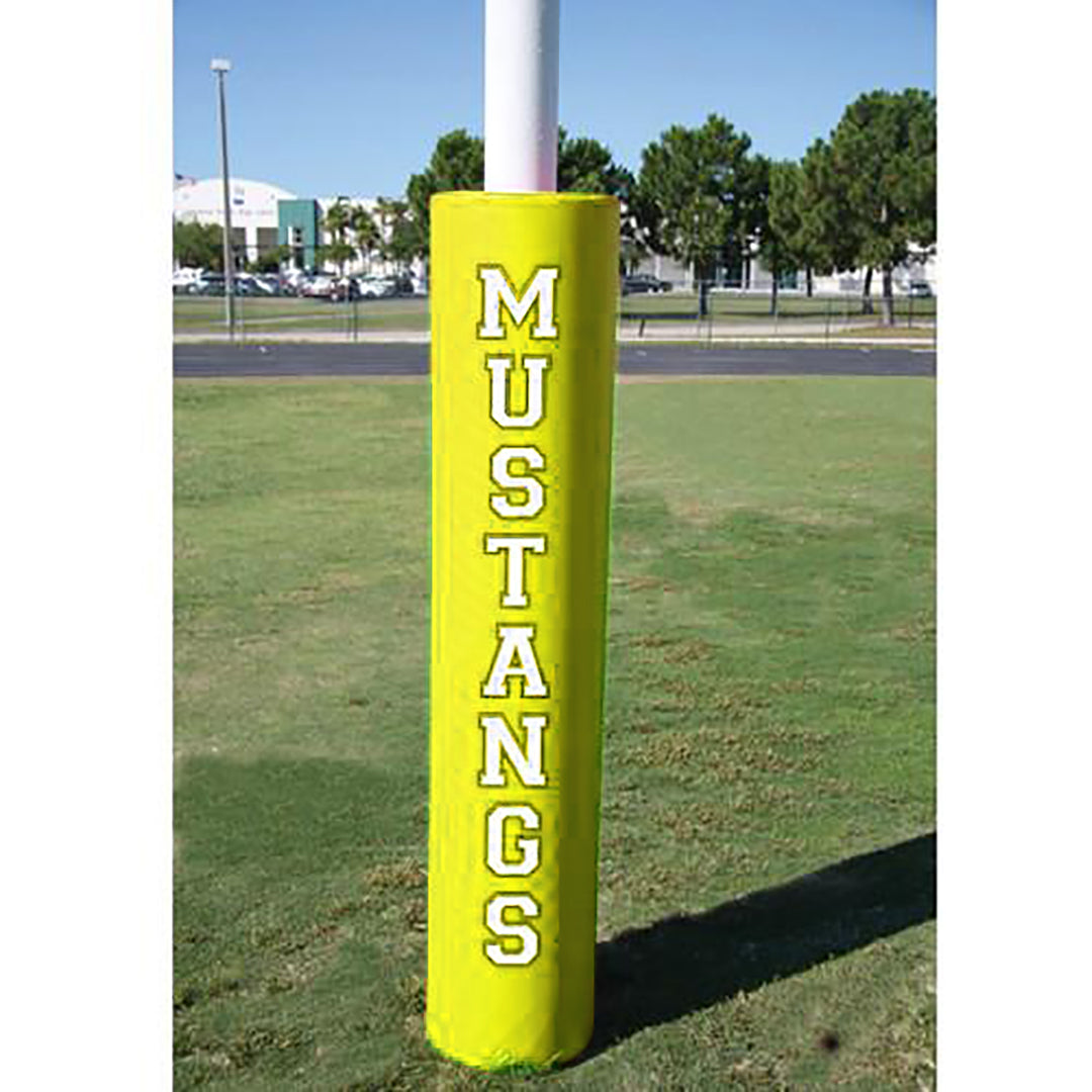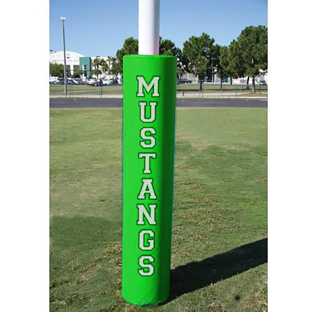 Made of 4 inch thick high density foam for maximum protection. Height of 6 or 7 feet and diameter of 4 inches. Surrounds the entire poles attaches with velcro.