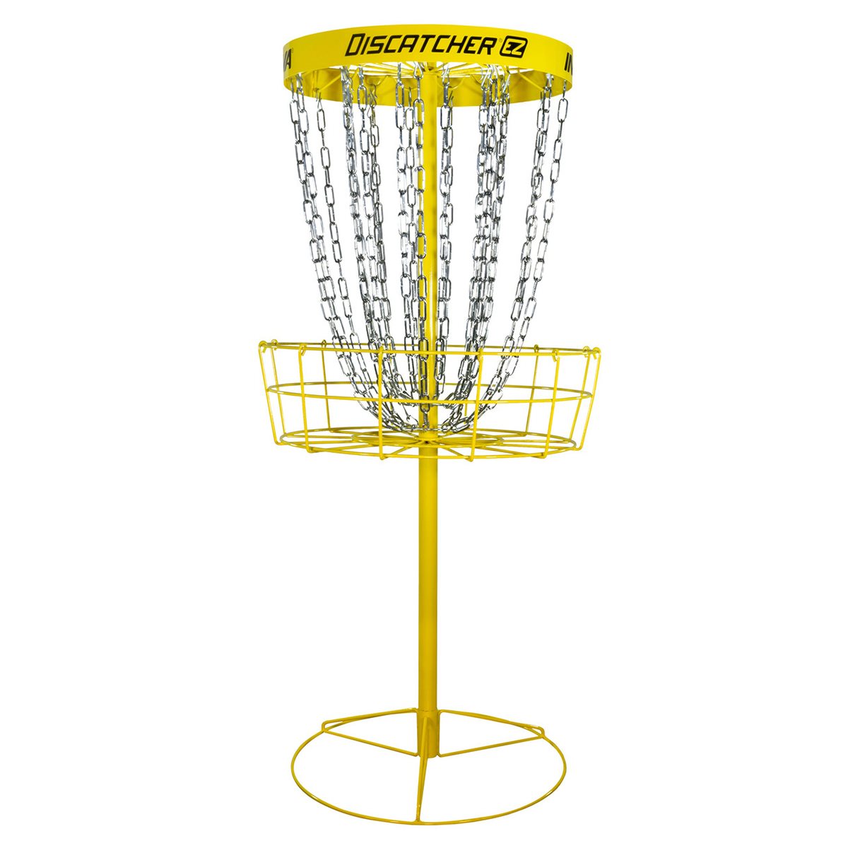 Portable Disc Golf Basket Discatcher EZ. The DISCatcher® EZ from Innova, with a simple 6-piece setup. Assembly takes just a few minutes, allowing for a quick start and finish of your game. The DISCatcher® EZ is not intended for permanent outdoor installation.