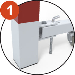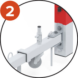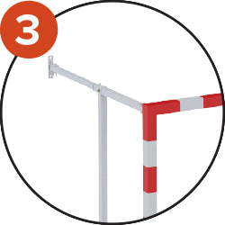 In order to further stabilize the goal, pegs secure the facade to the ground. The wheels are raised during the game in order to rest the upright on the ground to ensure better stability during the game. Vertical reinforcement bar to stiffen the arch. 50x50mm and 40x40mm poles for greater strength