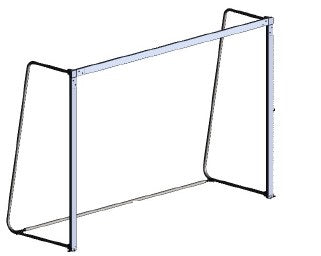 Futsal handball goal made of aluminum with a 1.5" x 3" frame. Senior size of 300cm x 200cm, with a depth of 106cm at the base and 74cm at the top.