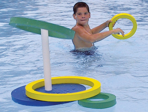 This game will allow users of your pool to have fun alone or in groups. By moving the game to the deeper end, older participants will face as much difficulty as younger ones in a shallower area, trying to throw the rings in the right spot.