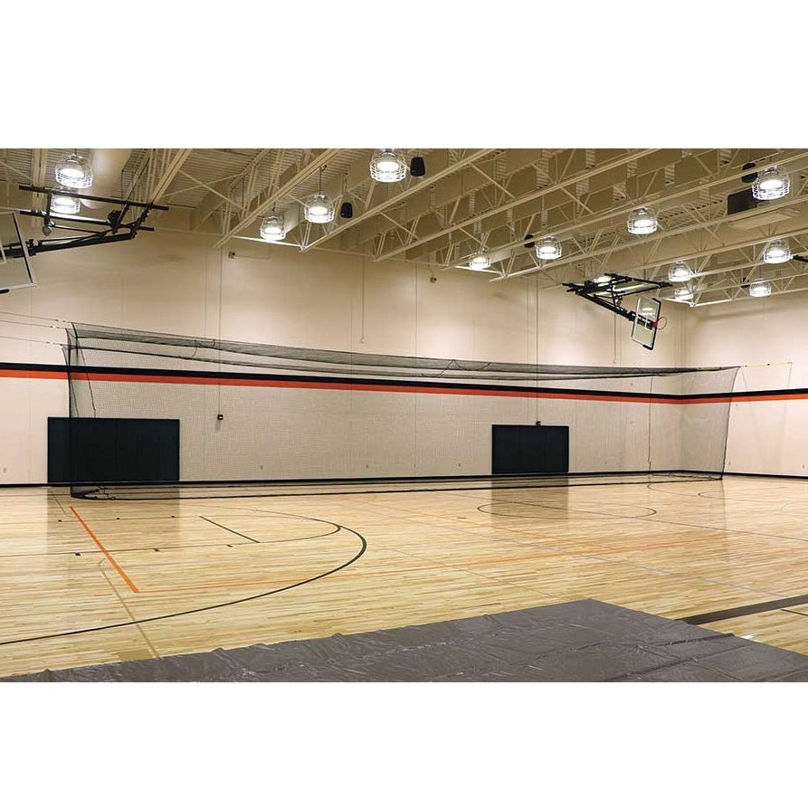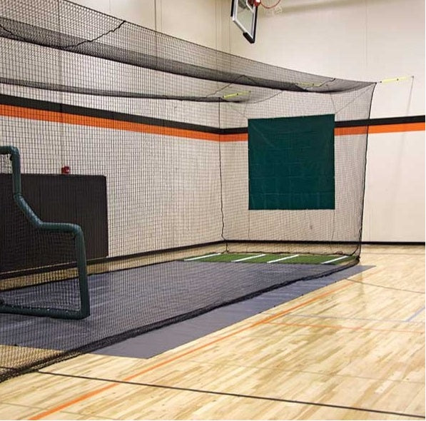Portable indoor sports cage very easy to install and dismantle. Hanging from wall to wall, nothing hangs from the ceiling. It only takes two people and a few minutes to install.