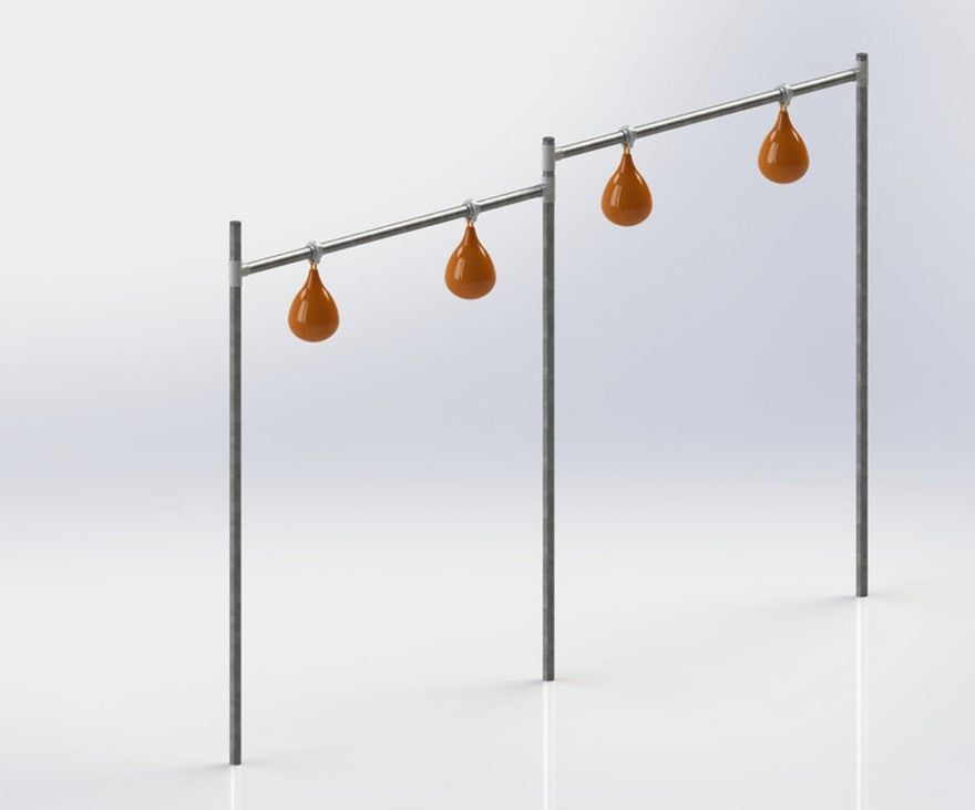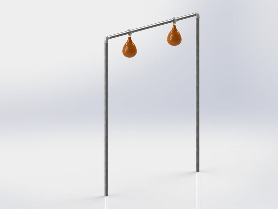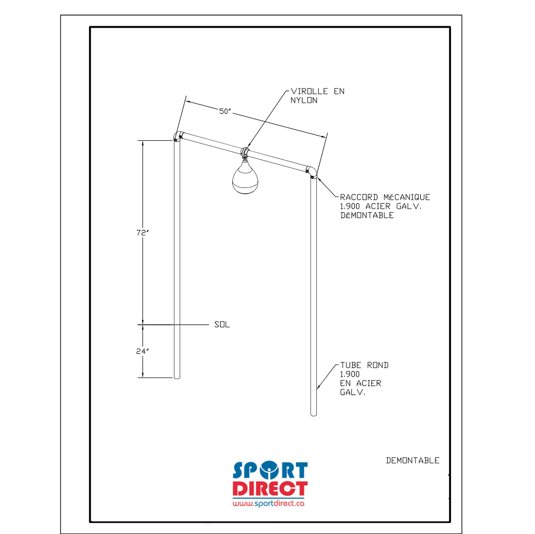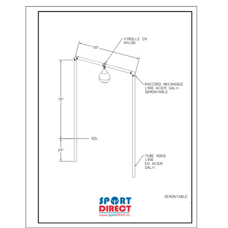 Galvanized steel adjustable pear ball game structure. Includes everything needed for floor installation. 1,900 inch dia. To be installed in concrete (sonotube) in the ground.