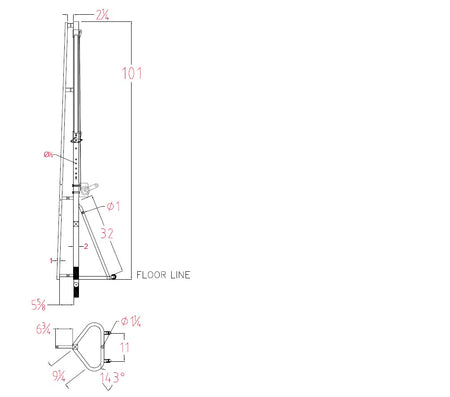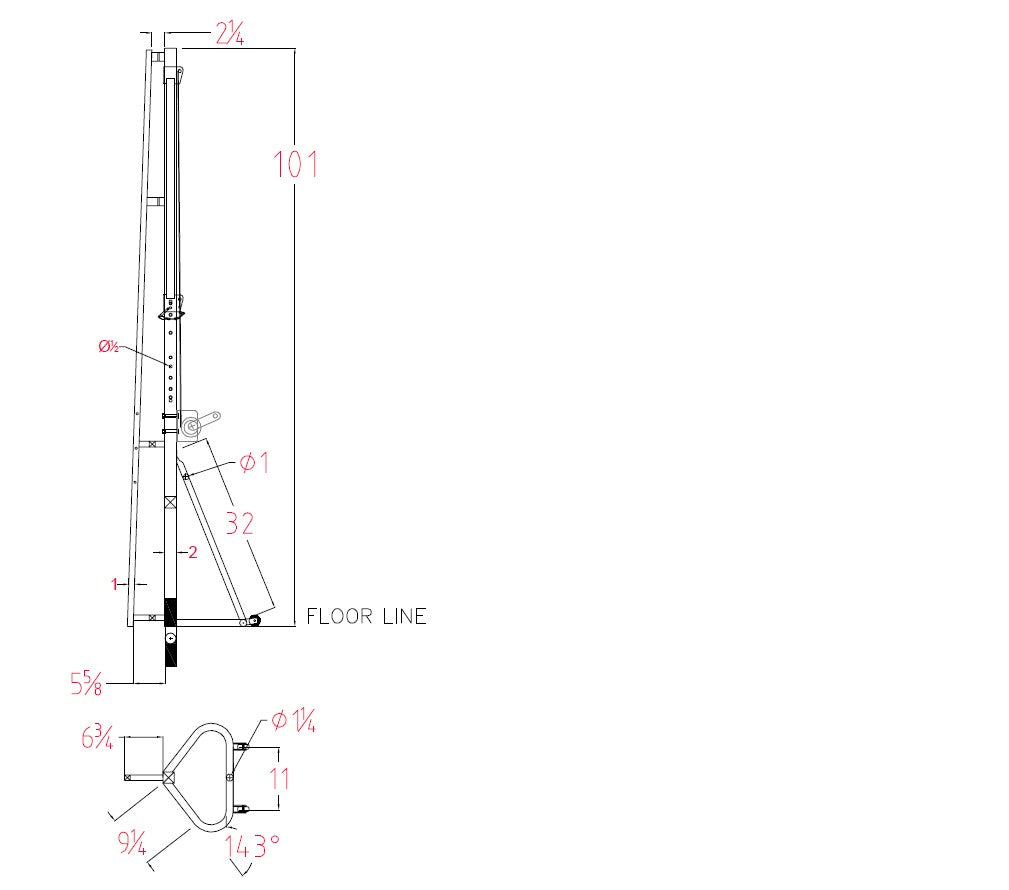 Made of 2" square and reinforced galvanized steel. Durable locket to adjust anchors. Transport wheel system. Red sandblast paint by default.