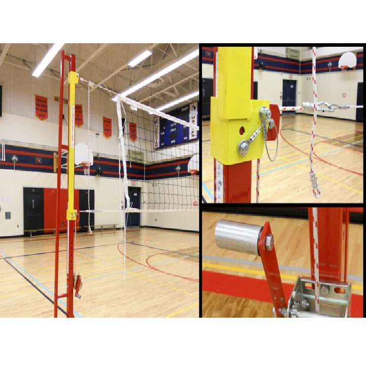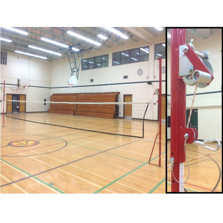 Our gymnasium volleyball posts can also be used for the perfect primary and secondary school gymnasium badminton. Adjusts from 8' for volleyball to 61" for badminton. Easy crank for offset.
