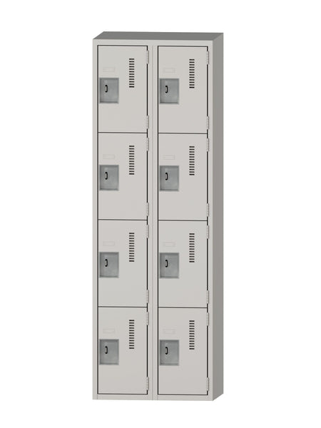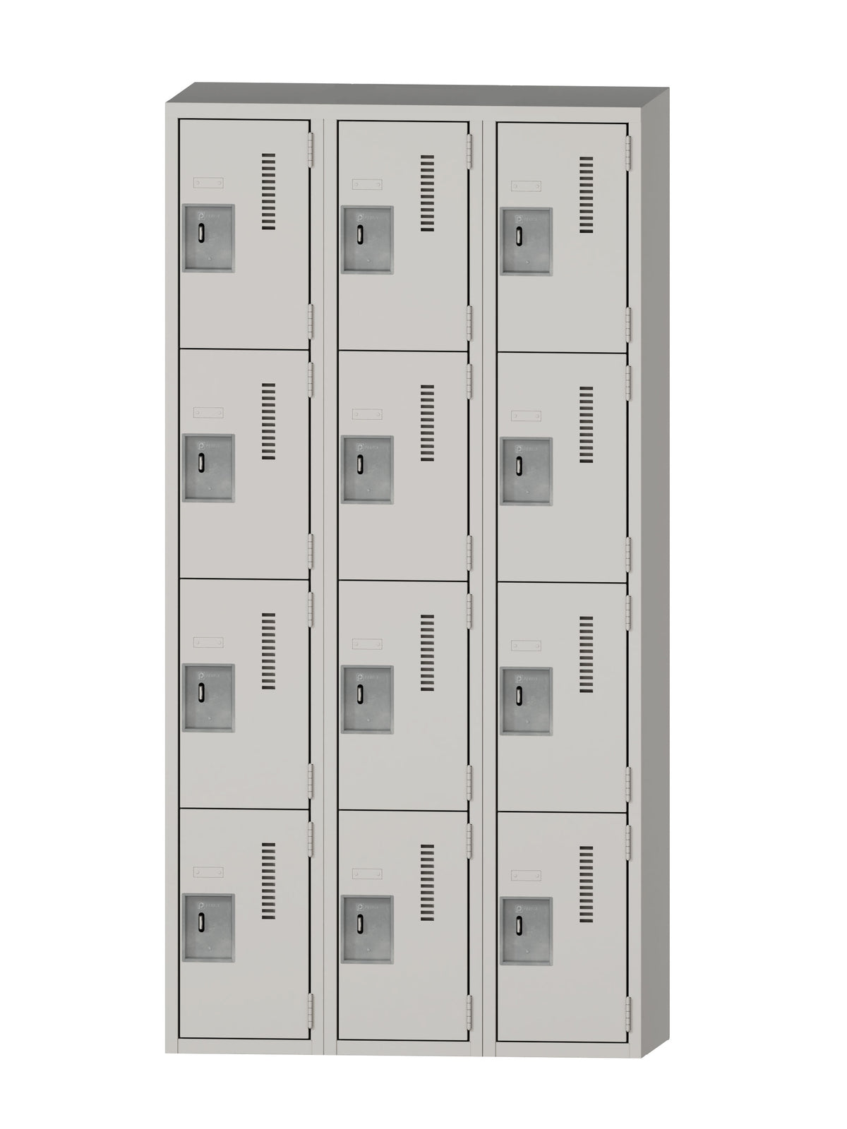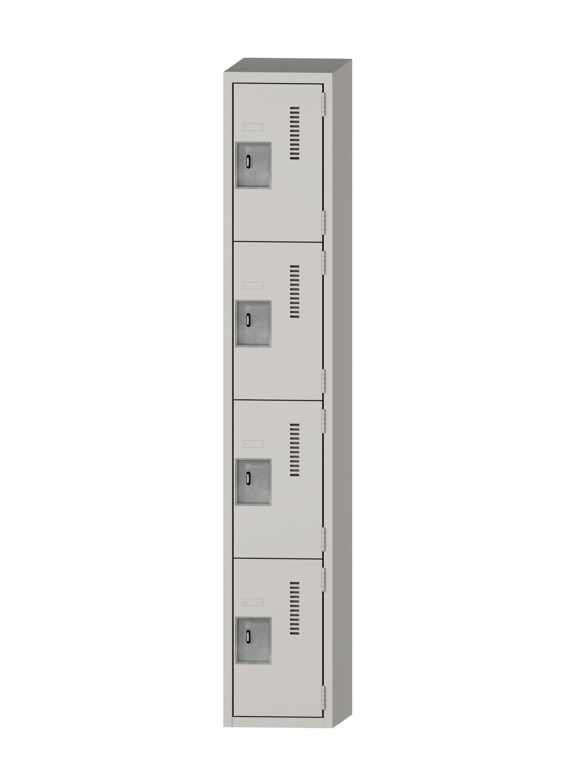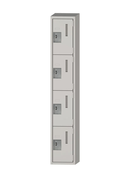 4 Doors Concorde series lockers made of steel, dimensions 12" wide x 18" deep x 72" high. Welded (assembled). Color in choice.