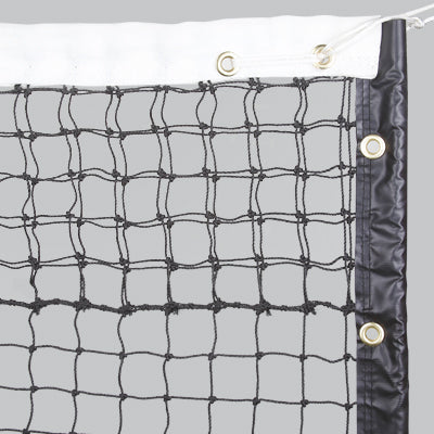 2.5mm single mesh and polyester top band. Made for recreational tennis or for young tennis players. Standard size 42' x 3' 3". The mesh size is 1-3/4". The steel cable is 47' long.