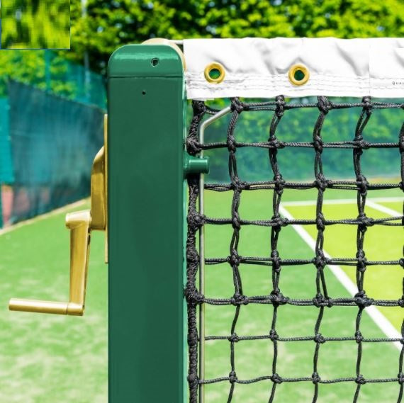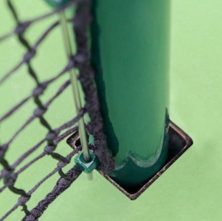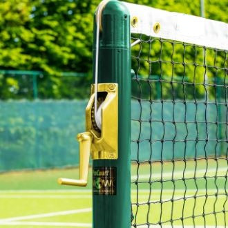 Features a high quality brass winding mechanism that meets all ITF regulations and BS EN 1510 safety standards. Optional 14" earth anchors. 1 year warranty.