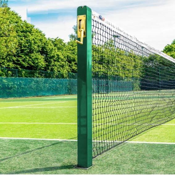 Vermont Heavy Duty Round or Square 76mm Steel Tennis Posts. Posts with a Wimbledon type green powder coated finish which gives them an excellent quality of resistance to scratches and bad weather.