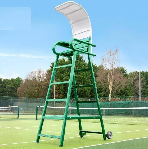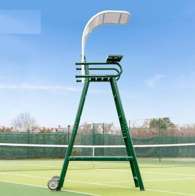 Aluminum tennis referee chair conforming to ITF regulations. Available with or without canopy. The canopy provides excellent protection from the sun to allow maximum concentration on the game. To