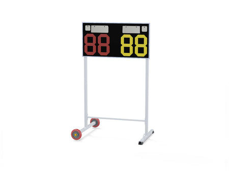 Made of aluminum, PVC and steel. Transports easily with the help of two wheels that do not mark the floors. PVC toe for stability in the gym or on the court. Fixed handles make handling and transporting the board easy.