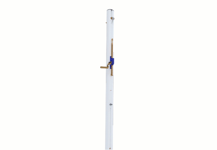 Training socketed volleyball central post in aluminium, adjustable net height with tension system by winch