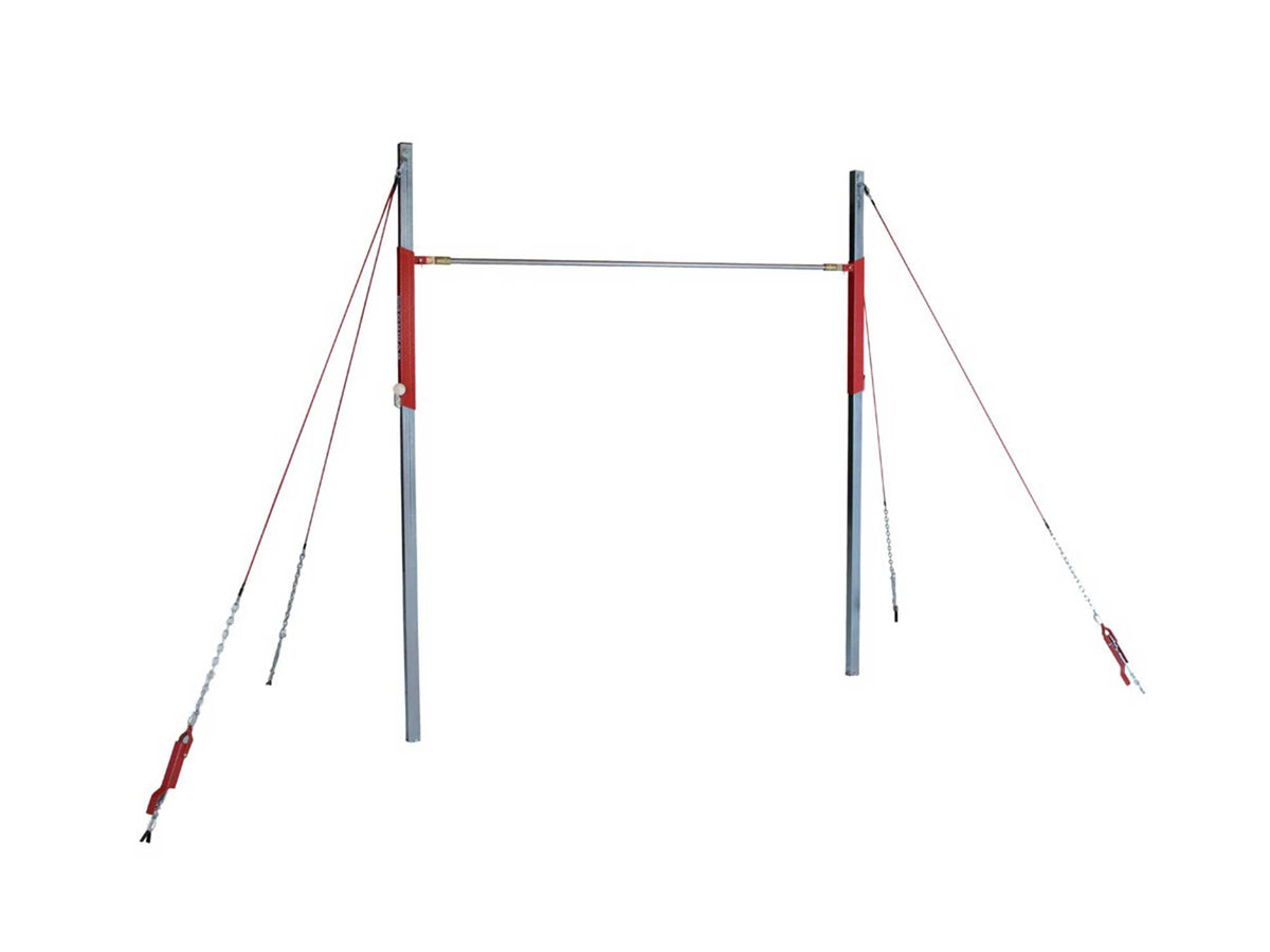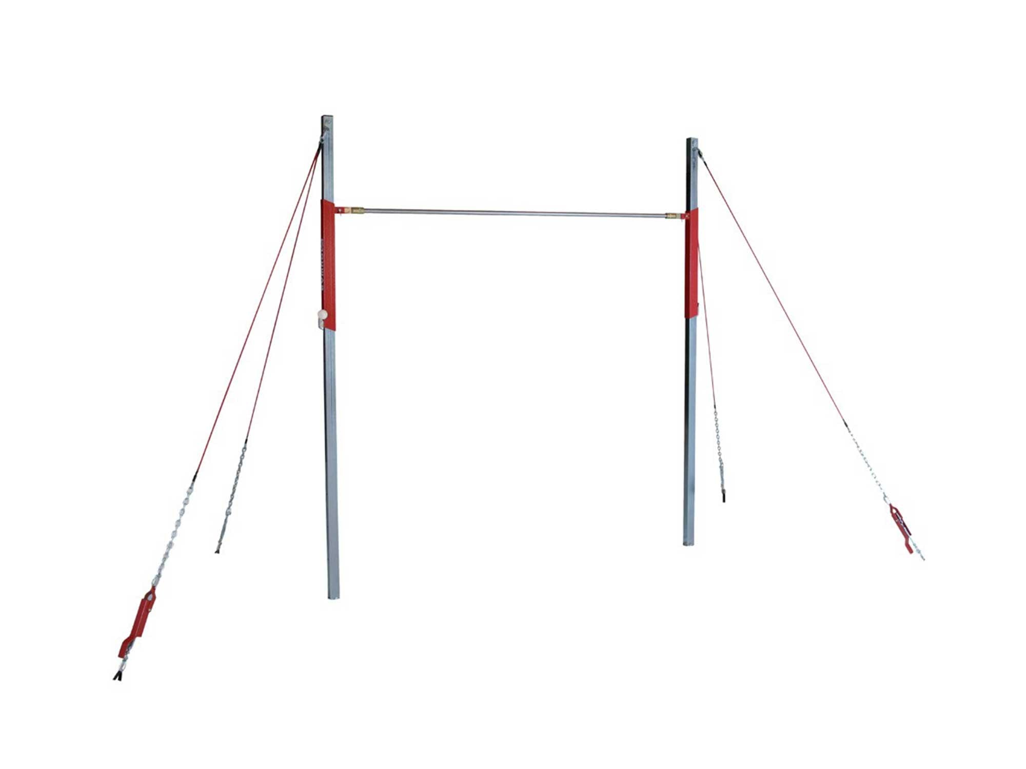 Adjustable gymnastic bar. easy to assemble and disassemble. Adjustment of the tension thanks to quick tensioners. Height adjustment: 0.95 m to 2.75 m high (in steps of 20 cm then 10 cm). made of sturdy steel. Floor area = 5.50 x 4 m. Comes with handrail.