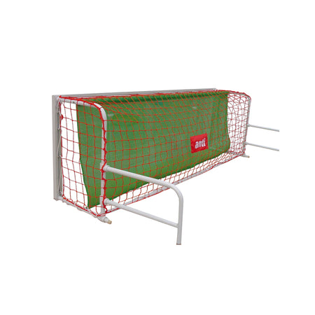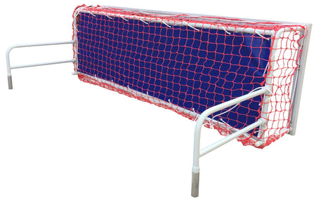 Stainless steel frame covered with baked paint. Height and length adjustable. Canvas weighted at the bottom. Polypropylene net included. Stainless steel anchors. Competition goal for any pool depth.