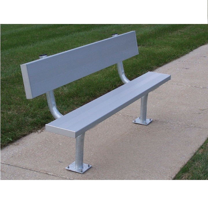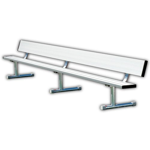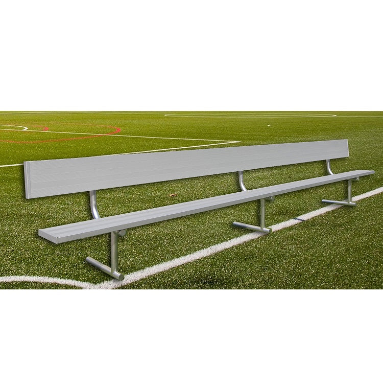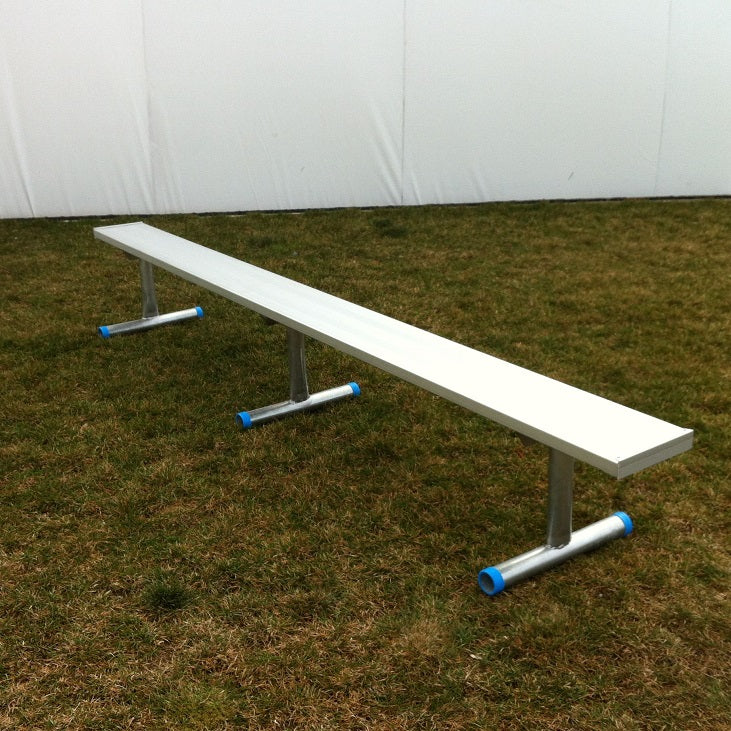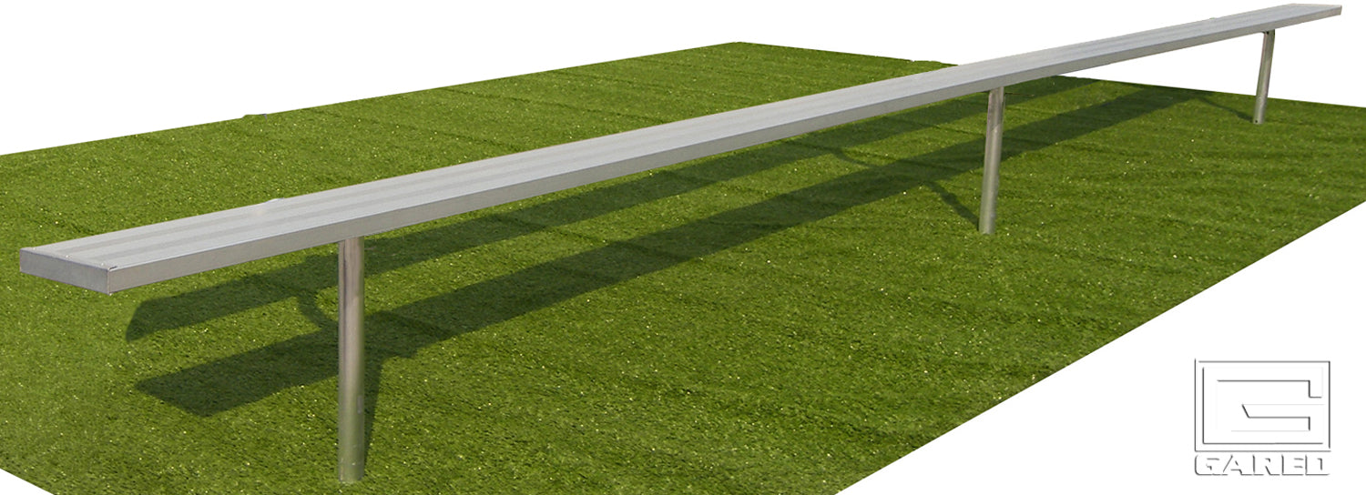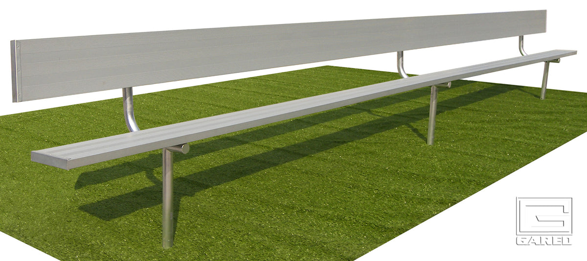 Available with or without backrest in 12' or 15' lengths. Proudly made in Quebec. Tubular feet with PVC end cap to protect floors and for more stability. 10" wide and 14" high.