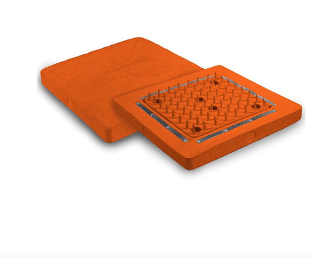 Chambro Spyder Artificial Turf Baseball Cushion Set. Choice of white or orange colors. Durable rubber spikes. Adheres to turf without anchors. Reinforced side walls. Molded and embossed rubber upper treated against UV rays.