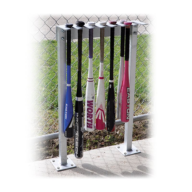 Baseball bat rack. Made of super strong galvanized steel Permanently fixed in the dugout. Holds 14 sticks