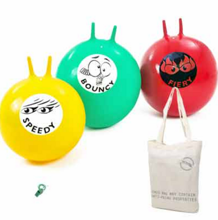 The bouncy ball race game with colorful and expressive face to add a little more fun when playing with kids. Suitable for teens and adults. The game contains 3 balloons 24" in diameter. Carrying bag included.