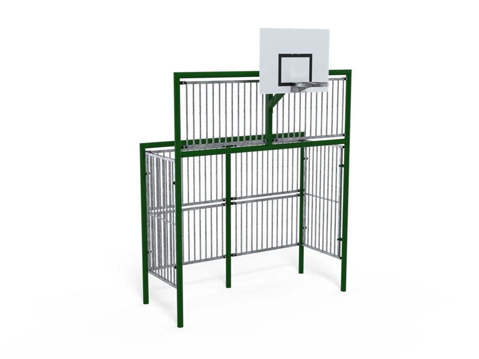 The multi-sport barred goal is designed for heavy outdoor use, making it ideal for playgrounds and sports facilities. Made from hot-dip galvanized steel with an anti-corrosion coating, it offers excellent durability against the elements. The 90 mm round-profile frame is permanently anchored into the ground for optimal stability. This model features a partial upper filling and allows versatile use, including an adjustable basketball hoop from 2.60 m to 3.05 m. The goal dimensions are 3 x 2 m with a total width of 3.18 m.