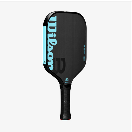 Raw carbon fiber paddle with an extended sweet spot, offering a blend of control, maneuverability, and spin. Experience superior control on the court with the Wilson Cadence 16, a solid choice for intermediate to advanced players who prefer a wide paddle with an enlarged sweet spot. The paddle's shape enhances your control and feel on shots from anywhere on the court. The raw carbon texture on the face generates maximum spin, while the 16 mm polypropylene honeycomb core helps dampen vibrations and provides a consistent overall feel.