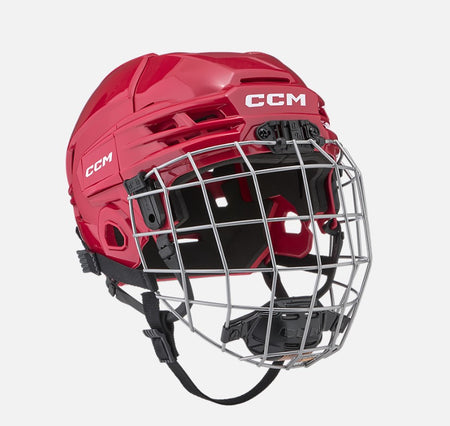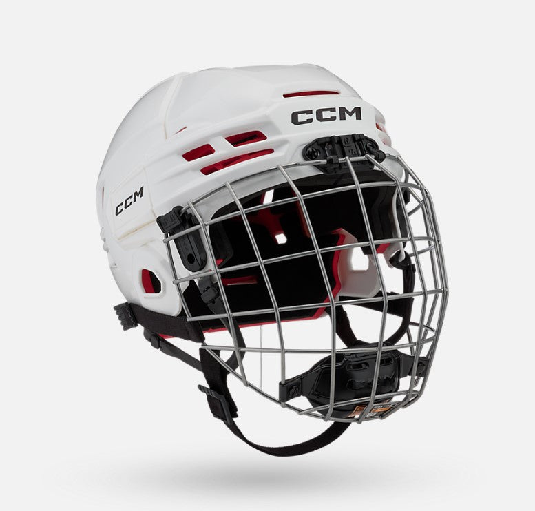 CCM Tacks 70 Senior combo ice hockey helmet. Dual-density protection, lightweight construction with full foam liner for optimal protection. Easy Flip Clip technology ensures a perfect fit, while the ventilated shell provides unmatched comfort. Comes in a combo with the black FM70 face cage.