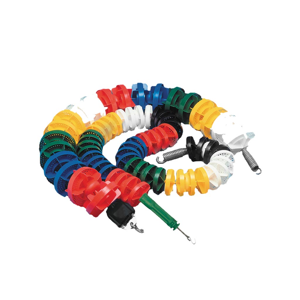These classic anti-wave cables are designed to disperse waves and prevent water from being agitated in the pool lanes. Each cable consists of 15 cm discs and polyethylene floats compliant with the standards of the International Swimming Federation (FINA). This equipment features a stainless steel cable coated with vinyl.