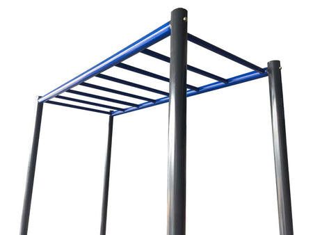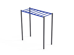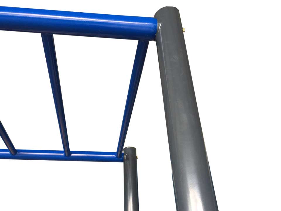 Classic suspension measuring 2.15 m long × 0.93 m wide × 2.36 m high. 4 posts to be anchored to the ground. Made of galvanized steel and painted blue and gray with an anti-corrosion primer. Weight: 54 kg.