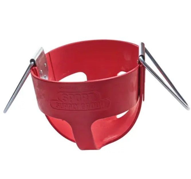 The GameCraft 360° Closed Swing Seat is constructed from durable rubber covered in rubber, designed to withstand the activity of a high-traffic playground. The seat is fully enclosed on all sides with open leg holes, allowing toddlers to stay safe while swinging back and forth. Designed to accommodate young children, the seat allows toddlers to lift their feet up and start swinging like the big kids. The red color adds a dynamic touch to any recreational playground.