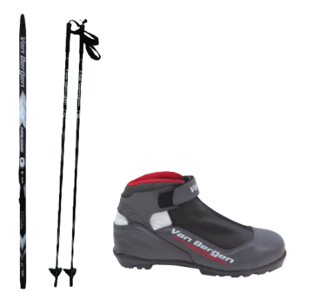 - Skis (model K2612): The unisex Van Bergen cross-country skis with bindings are ideal for recreational skiing. Rottafella ski bindings are included with your skis and are compatible with Van Bergen boots using the NNN system. The skis require no waxing, making it really easy to start your skiing adventures hassle-free.