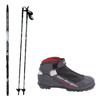 - Poles (model KPJR): The unisex Van Bergen junior cross-country ski poles are perfect for recreational skiing. They come with wrist straps to prevent losing the poles during your session and a steel tip for a solid grip on snow and ice. Color: gray/black.