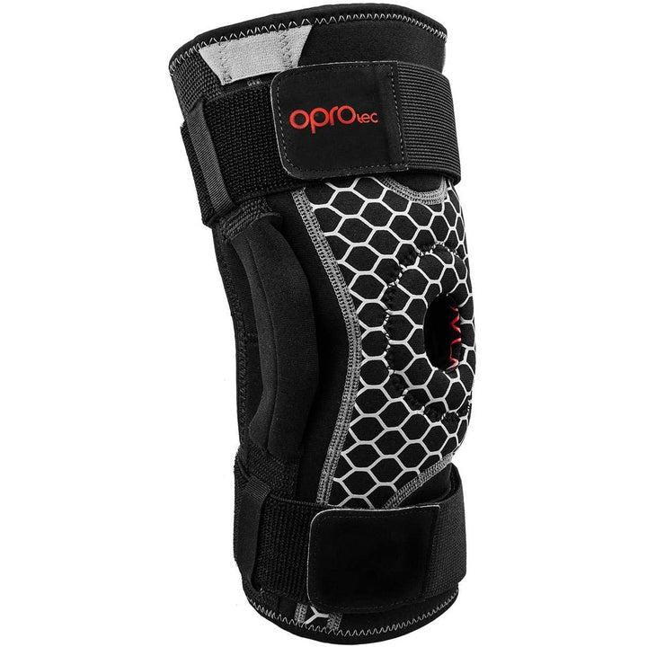 The OPROtec Knee Brace with Metal Hinges provides strong and stable support for the knee, ideal for severe injuries such as anterior cruciate ligament (ACL) tears and ligament sprains. Made of flexible and stretchable neoprene, it offers thermal compression to improve stability and blood circulation. The double-pivot hinges enhance joint stability, and the knee brace is available in multiple sizes for a personalized fit.