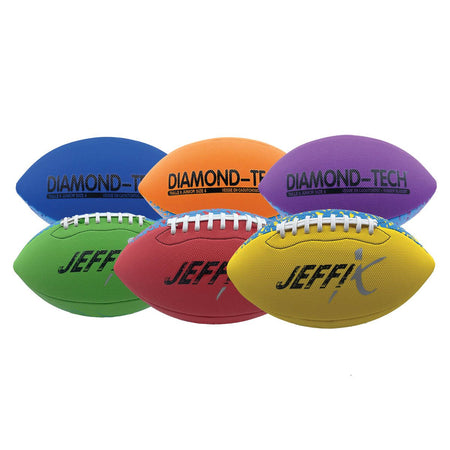 Inflatable soccer balls with exclusive DIAMOND-TECH™ technology, made of a cotton envelope for great flexibility, covered with PVC foam. Ideal for young people because of the softer touch. Sold in groups of 6.