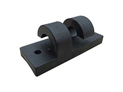 Black PVC net hook with double fixings for football or handball goals, UV treated PVC. Fastening with two rivets (included).