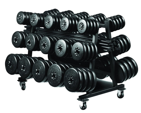Ensemble de poids aérobiques York® – Pack Club avec support mobile est la solution idéale pour les entraînements de groupe en salle ou en studio. Ce kit comprend 20 ensembles de plaques de 40 lb chacun, ainsi qu’un support mobile facilitant le rangement et le déplacement. Robuste, pratique et facile d’accès, il permet d’organiser efficacement les poids tout en optimisant l’espace d’entraînement.