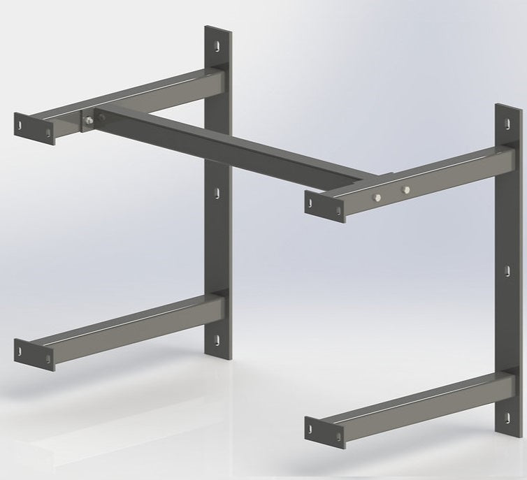 Fixed basketball goal wall structure made of painted steel. Robust for institutional use. 24" wide
