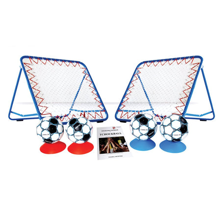 Tchoukball set including 2 steel goals painted with blue sandblasting, top quality ropes and springs, equipped with rubber tips to protect floors. 4 balls and an instruction manual and rules. Meets the federation standard.