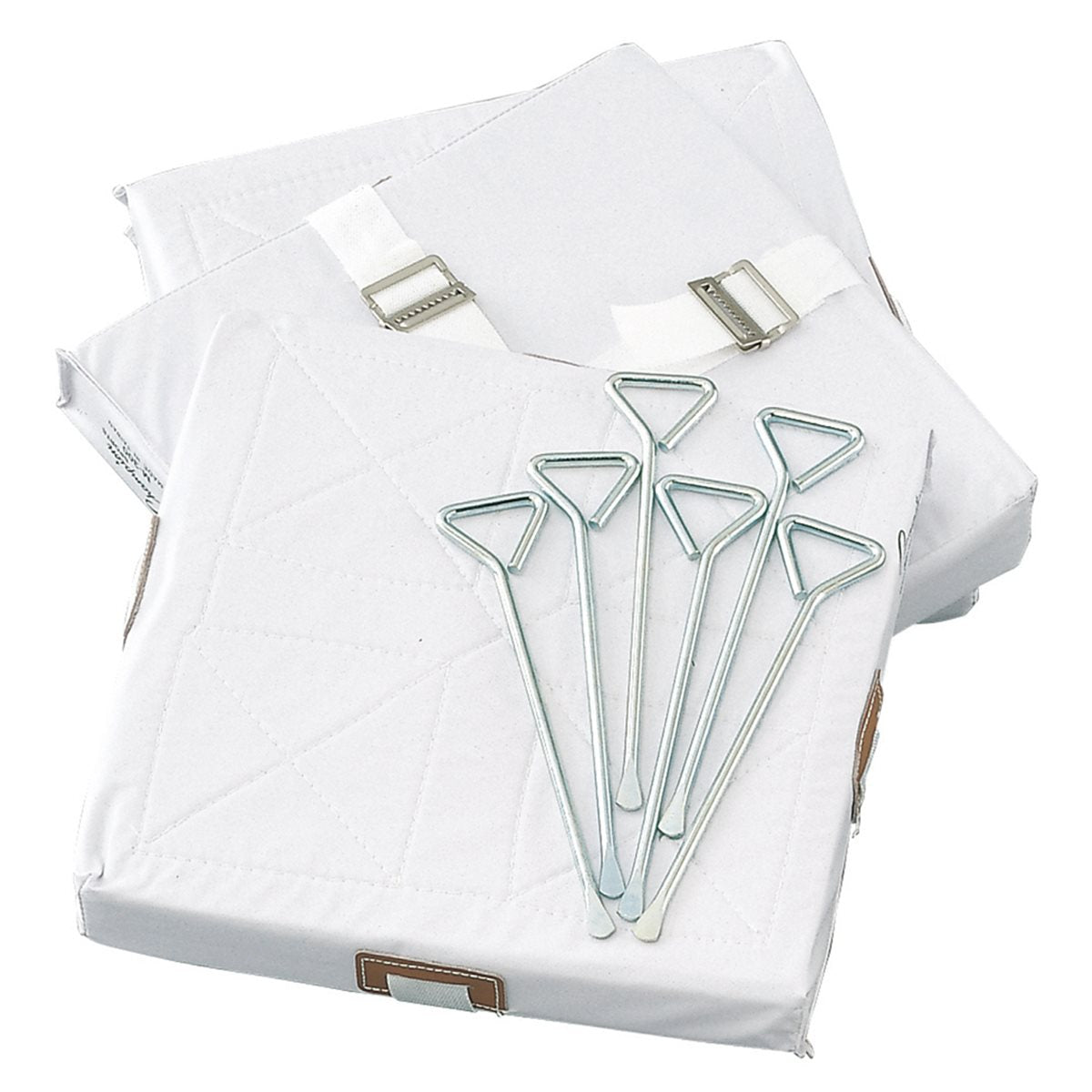 Set of three baseball cushions with steel stakes. Includes 3 goals, straps and 2 stakes per goal.