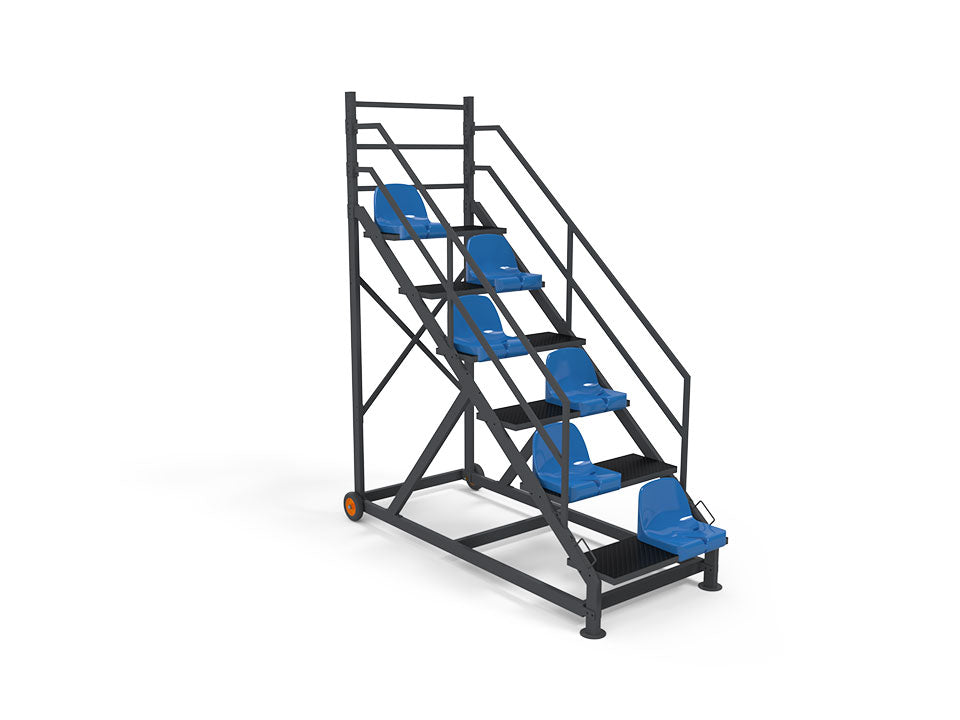 Referee stand with 6 or 8 standard seats. Choice of seats with or without backrest.
