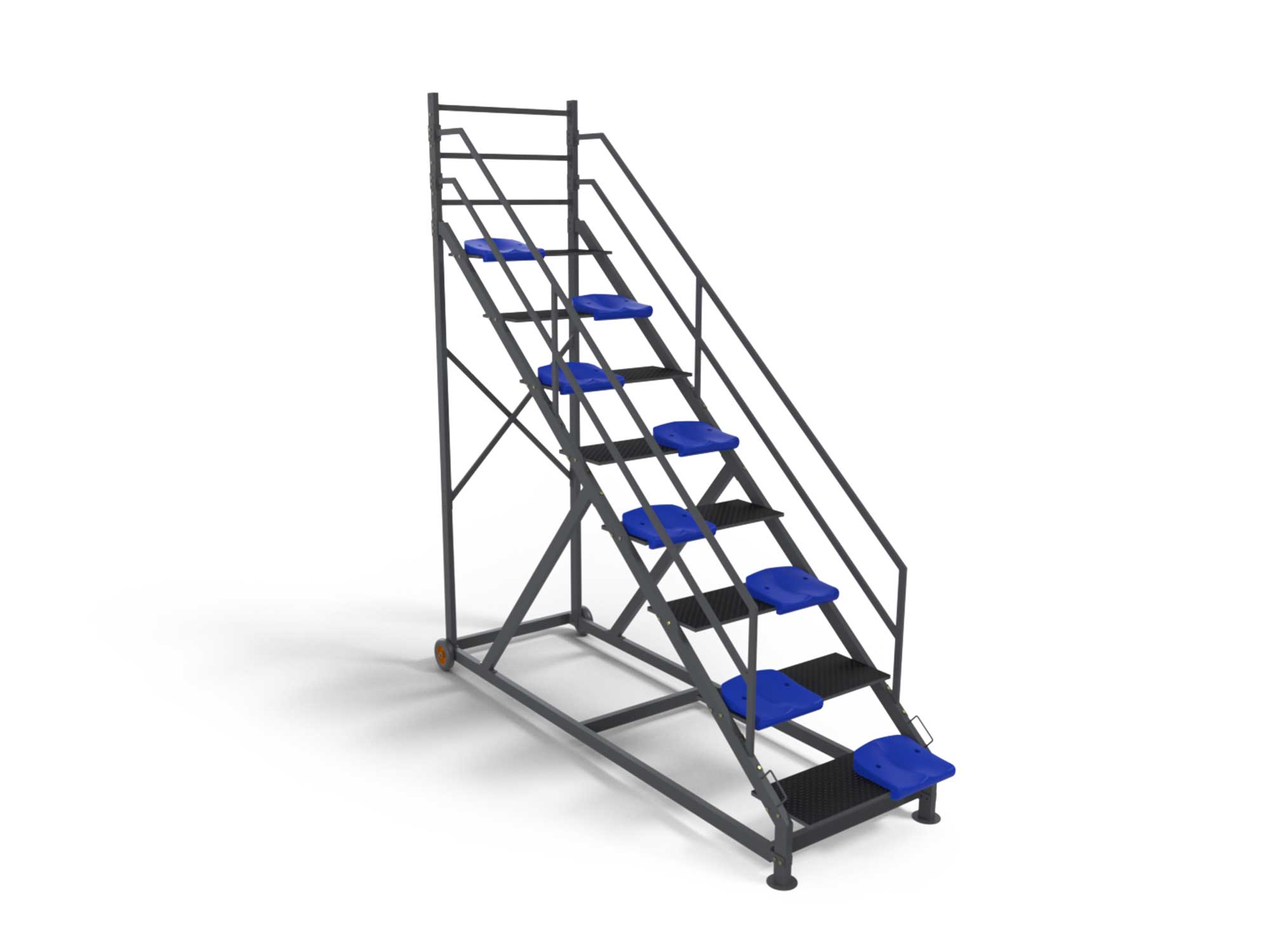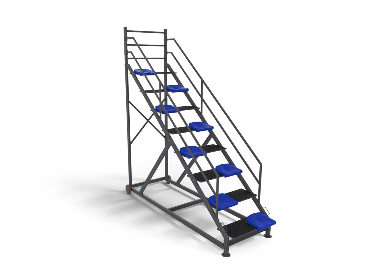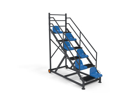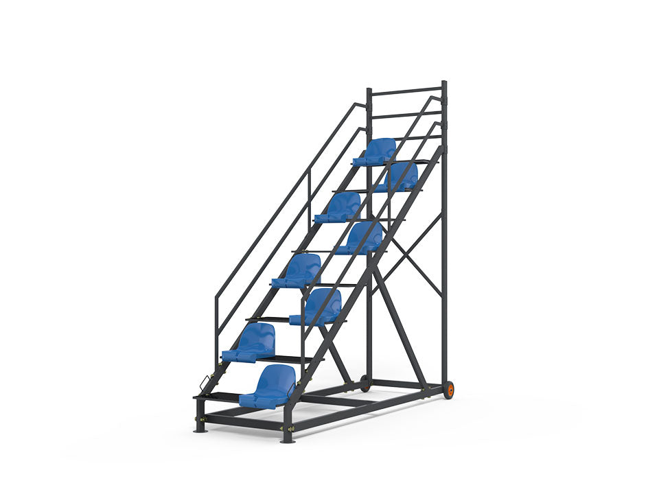 Steel structure and HDPE seat. Height 3.09m Length 1.21m Width 2.72m. Provide optimal visibility for officials. Designed with rear wheels to help users easily move the product to the right position. Structure with non-slip ladder and handrail. A non-slip floor ensures user safety.