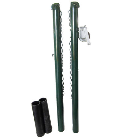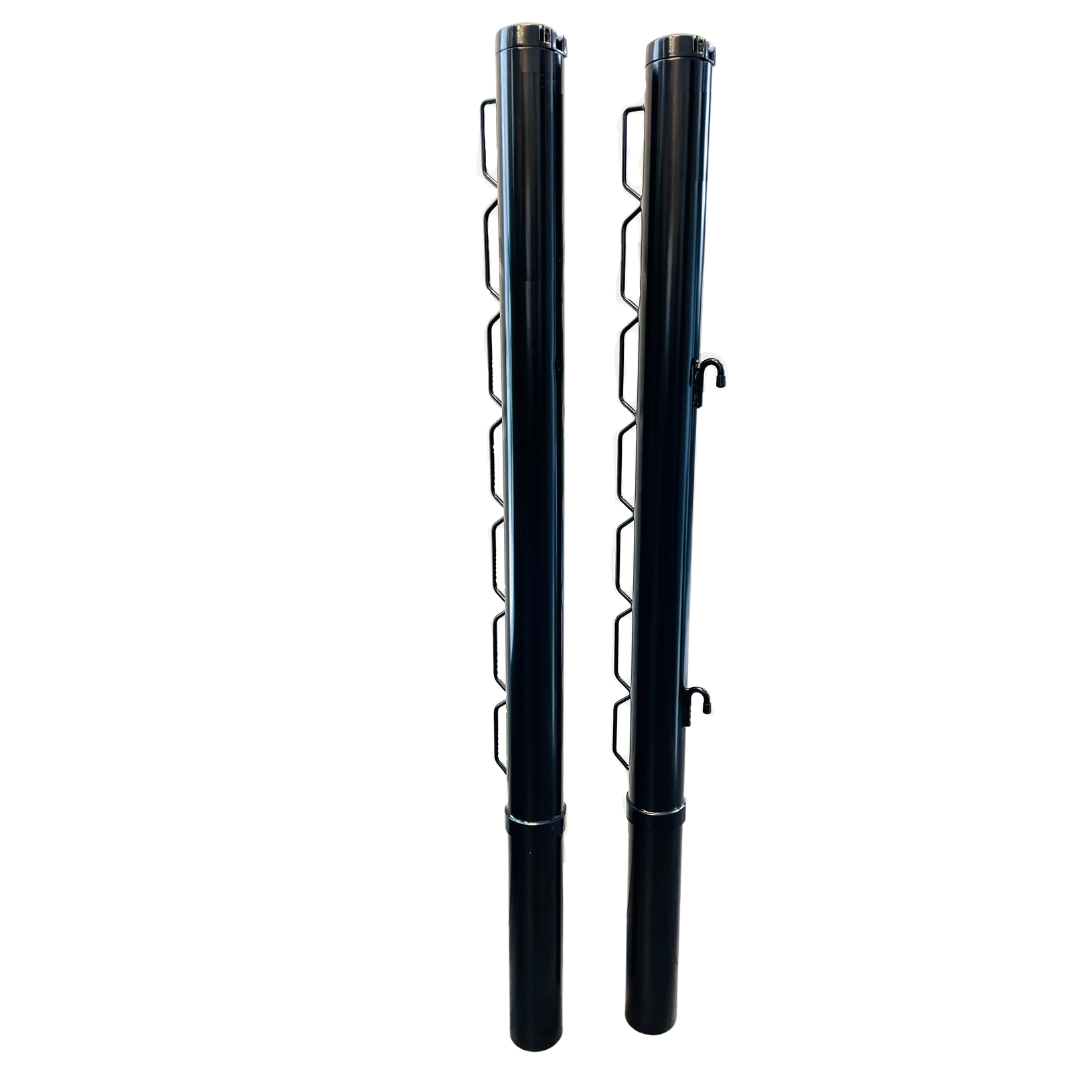 External Winch Pickleball Posts made of heavy duty steel 2 7/8" OD Ratcheting winch. 16" PVC anchors included.