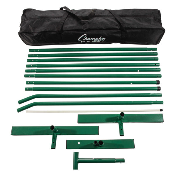 Portable pickleball net. Play pickleball anytime, anywhere! The net and post system assembles in minutes. Sustainable construction. 36" high at the ends and 34" at the center according to federal standards. The length of the net is 22'.