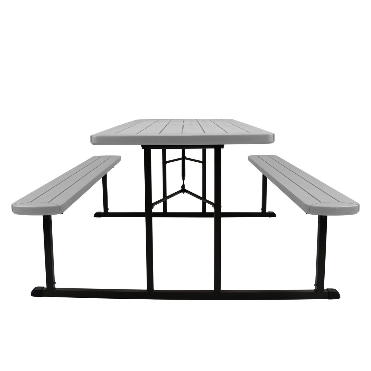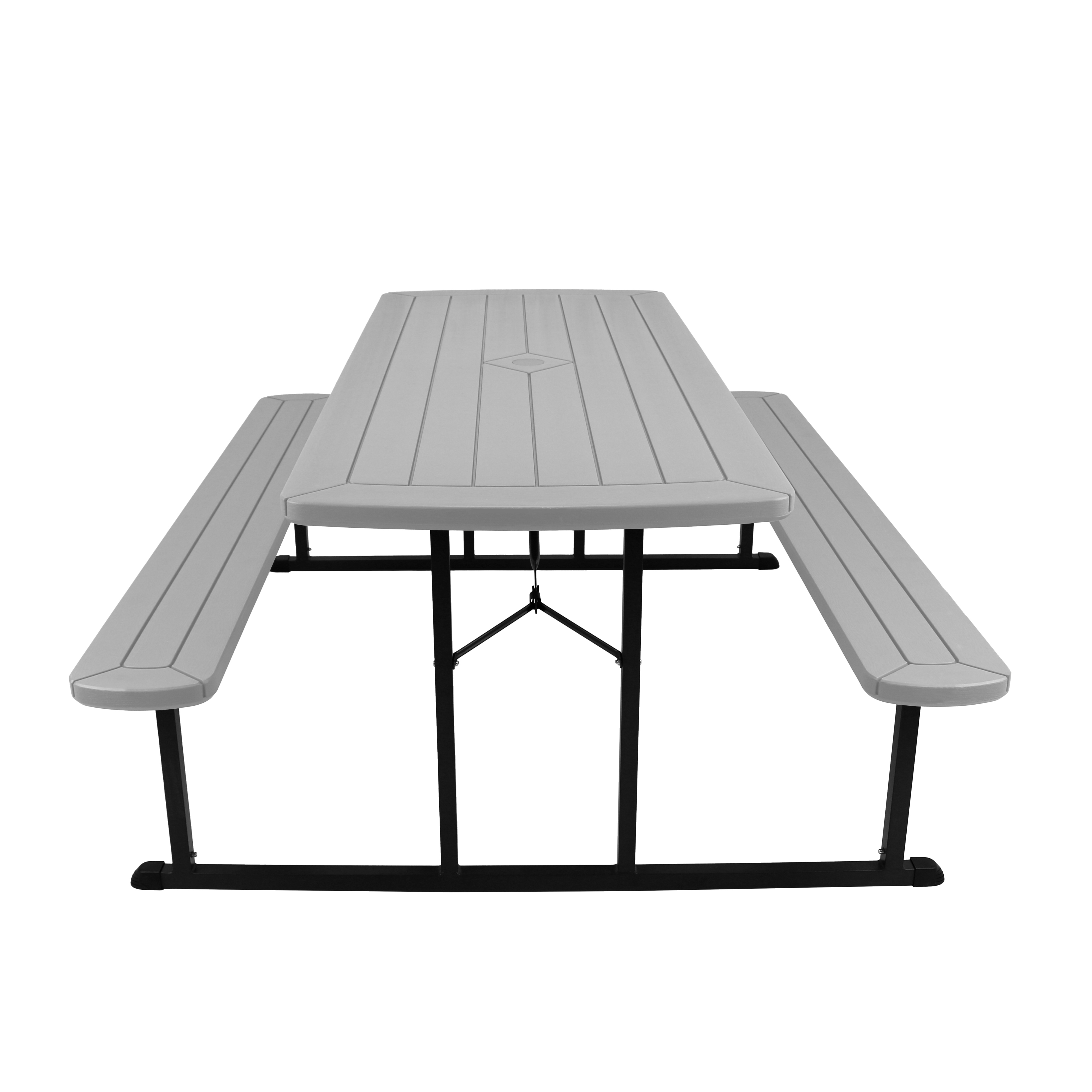 Transform your gatherings into unforgettable experiences with the folding picnic table. Designed for those who enjoy the pleasures of outdoor dining, this versatile table is much more than just a piece of furniture: it’s your ideal partner for creating memorable moments, whether indoors or outdoors. It folds flat for easy storage, measuring only 3 inches in height. It features a hole (with cover) for an umbrella, ensuring optimal comfort on sunny days.