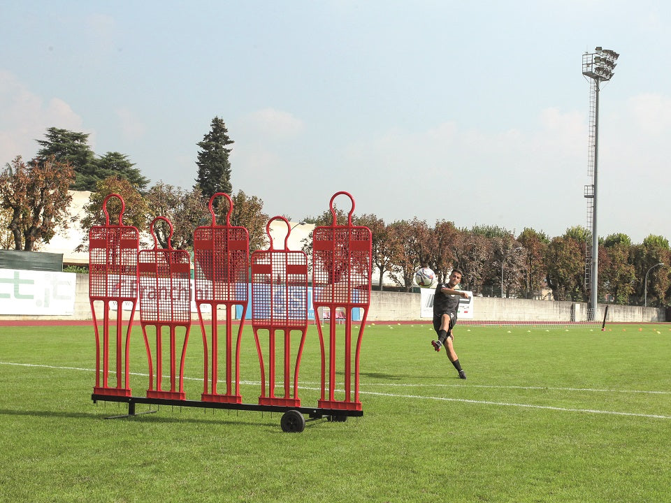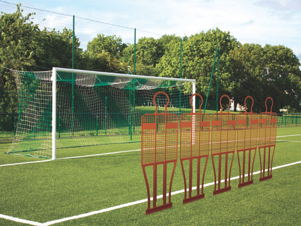 Flexible free kick wall made from soft plastic. Can be used as a free kick wall or for slalom drills. Comes in a set of 5 mannequins. Perfect for training, they can be used as a free kick wall or for slalom to work on dribbling skills. Training accessory for grass fields. For synthetic fields, a mobile cart is available as an option.